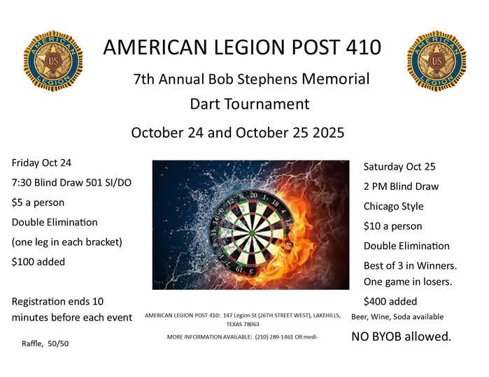 | 10/24 Bob Stephens Memorial Steel Dart Tournament | ![]() |