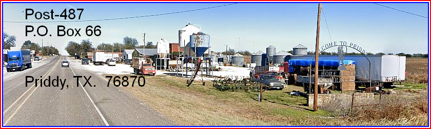| AMLTXPost487 | Priddy Memorial | 325-966-3755 | USPS P.O. Box 66 76870-0066 | 2020-09-01 |